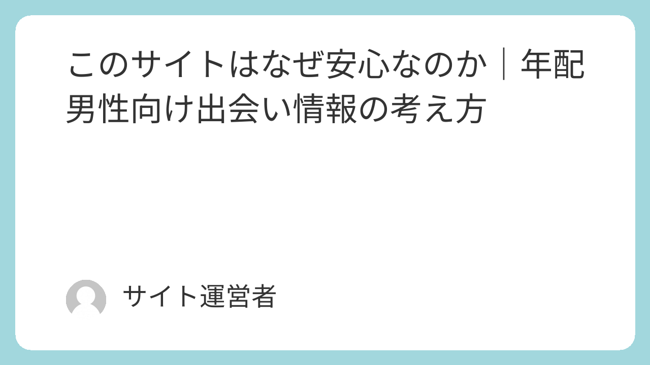 このサイトはなぜ安心なのか|年配男性向け出会い情報の考え方